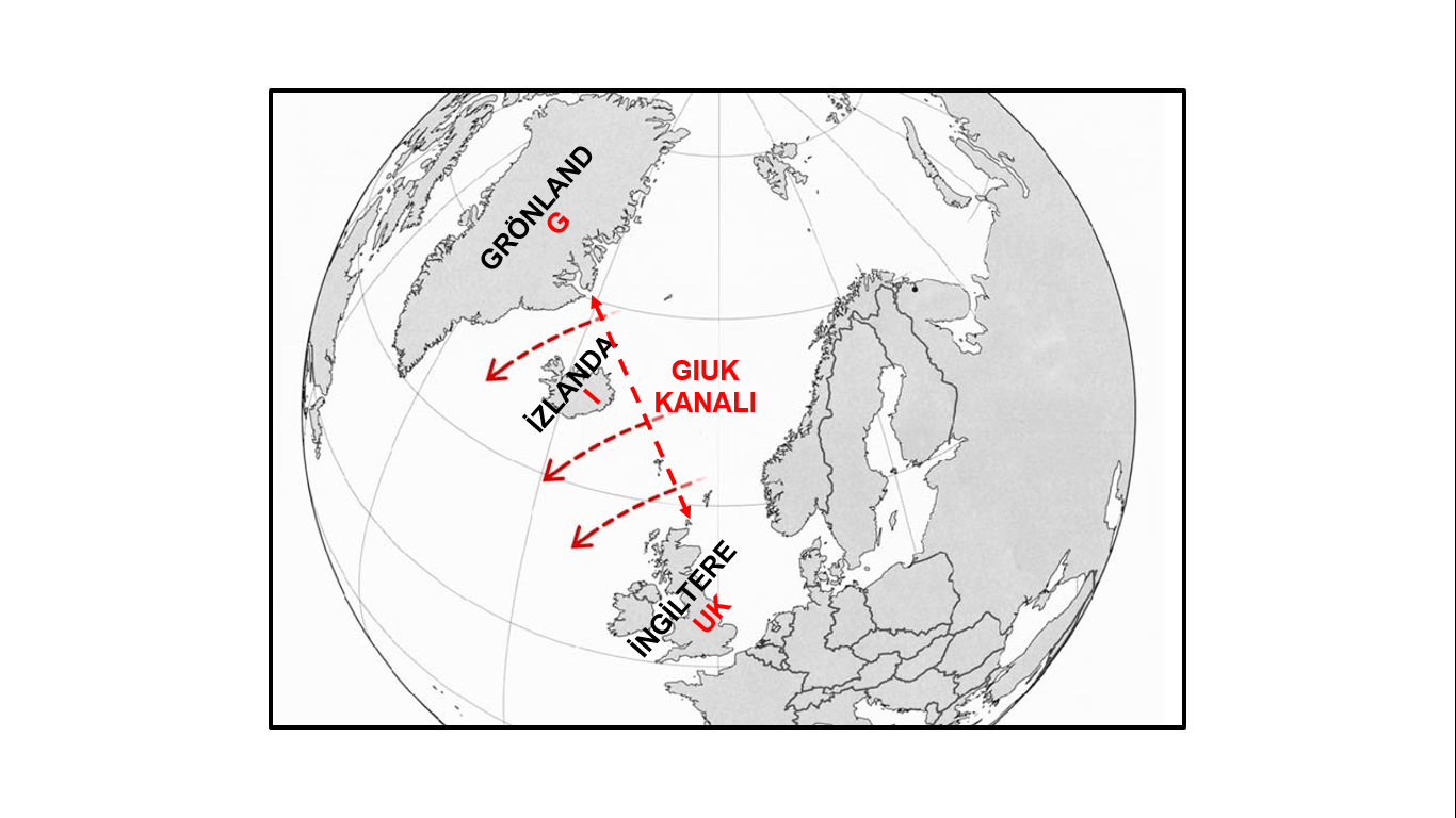Şekil-1: GIUK Kanalı, Grönland, İzlanda ve Birleşik Krallık hattını gösteren harita
