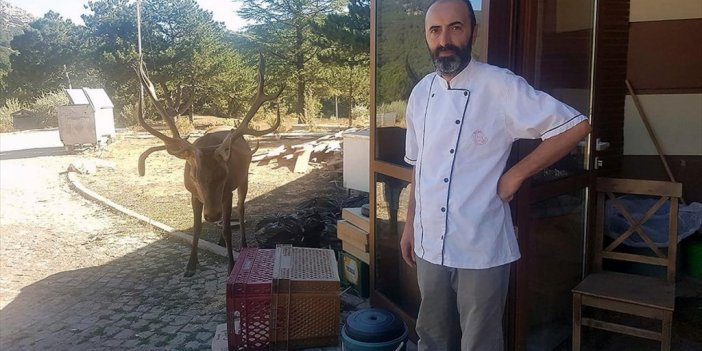 Restoranın şefi Orhan Kalkan, AA muhabirine, geyiğin yaklaşık bir aydır günde iki kez restorana geldiğini ifade etti.