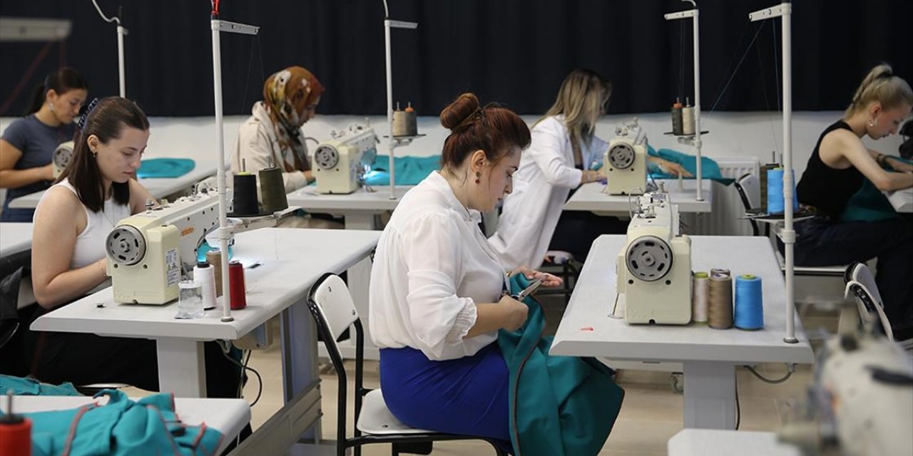 Giyim Üretim Teknolojisi Programı öğrencileri, derslerinden arta kalan zamanlarında okuldaki tekstil atölyesinde bir araya geliyor.