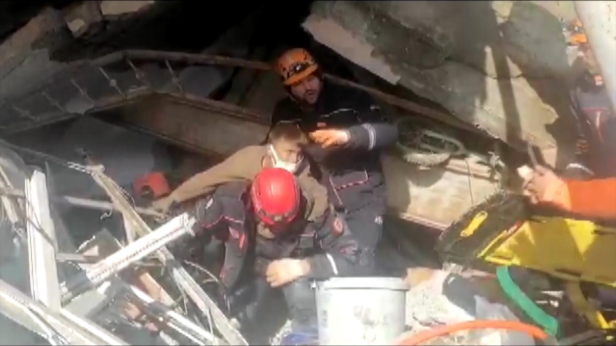 Depremden etkilenen Gaziantep'in Nurdağı ilçesindeki çalışmalara katılan Rize AFAD ekiplerinin enkazdan kurtardıkları çocukla diyaloğu duygulandırdı