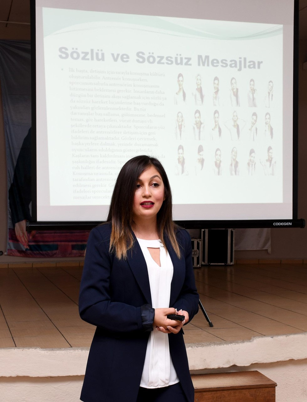 Seminerde, Sporcu Diyetisyeni Aysen Arıcan Öz tarafından antrenörlere sporcularda büyüme ve gelişmenin izlenmesi, sporcu beslenmesinin genel ilkeleri, farklı spor dallarında beslenme, besinsel ergojenik yardımcılar ve doping başlıkları altında çeşitli bilgiler verildi. Psikososyal Destek Merkezi Uzman Psikoloğu Candan Atak ise antrenör ile sporcu arasındaki iletişimin psikolojik boyutlarına değindi.