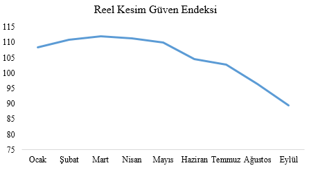 Tablo ve grafik, ekonomiye duyulan güvende yılbaşından itibaren önceleri daha yavaş, Temmuz’dan itibaren de hızlanarak artan bir güven kaybı yaşandığını ortaya koyuyor.
