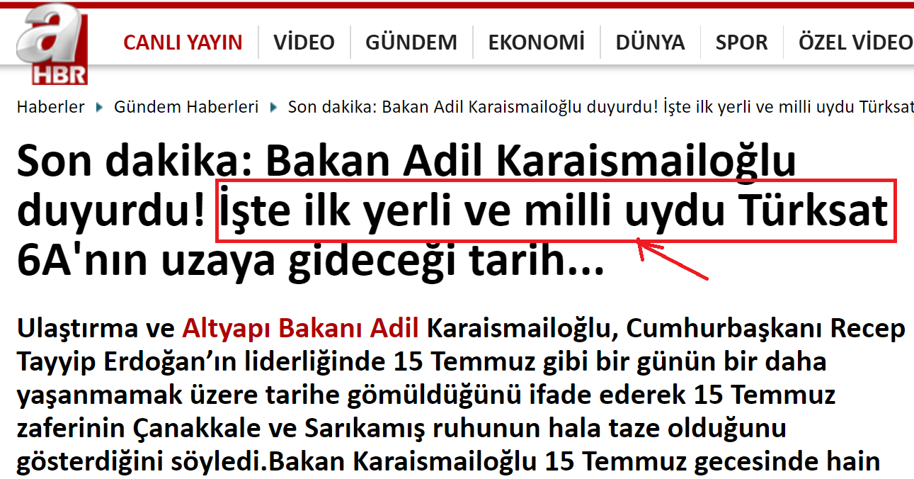 Her seferinde milli duygularmız okşanır ve ‘oh biz de artık yapabiliyoruz’ deyip sevinirken 1 gün önce Türksat 5A ‘nın uzaya fırlatılma töreninde konuşan Ulaştırma ve Alt Yapı Bakanı Adil Karaismailoğlu öyle bir konuşma yaptı ki, tüm bunların boş bir yalan olduğunu ortaya koydu.