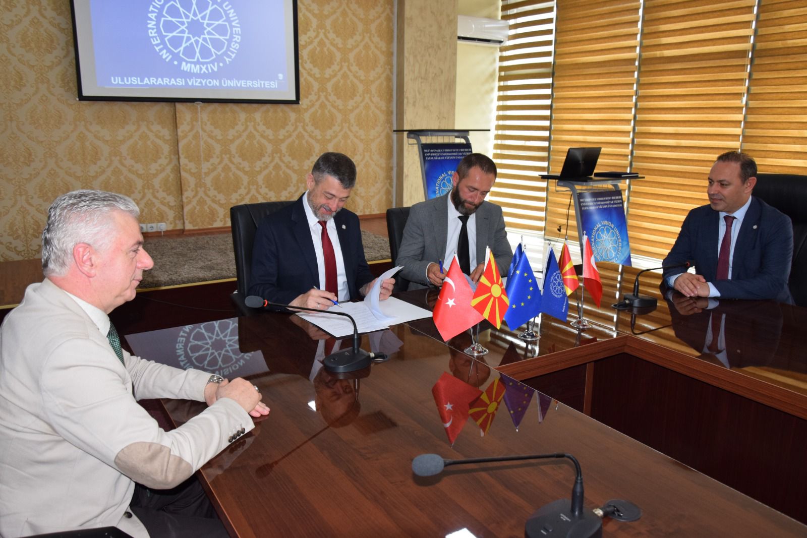 Kuzey Makedonya Cumhuriyeti Eğitim ve Bilim Bakanlığı’nın Eğitimi Geliştirme Bürosu ile Uluslararası Vizyon Üniversitesi arasında önemli bir işbirliği protokolü imzalandı. Bu protokol, Kuzey Makedonya Cumhuriyeti Eğitimi Geliştirme Bürosu Müdürü FETA ve Uluslararası Vizyon Üniversitesi Rektörü Prof. Dr. Ahmet Vecdi CAN tarafından kurumları adına imzalandı.