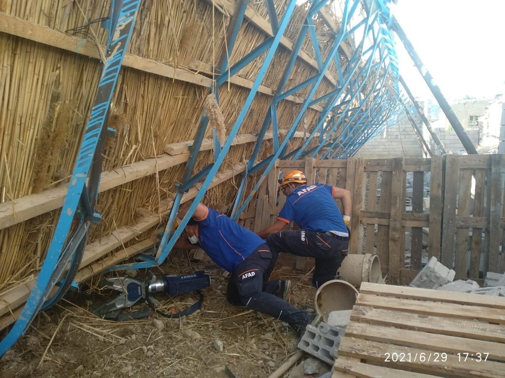 Göçük altında kalan koyunları kurtarma çalışması sürüyor.