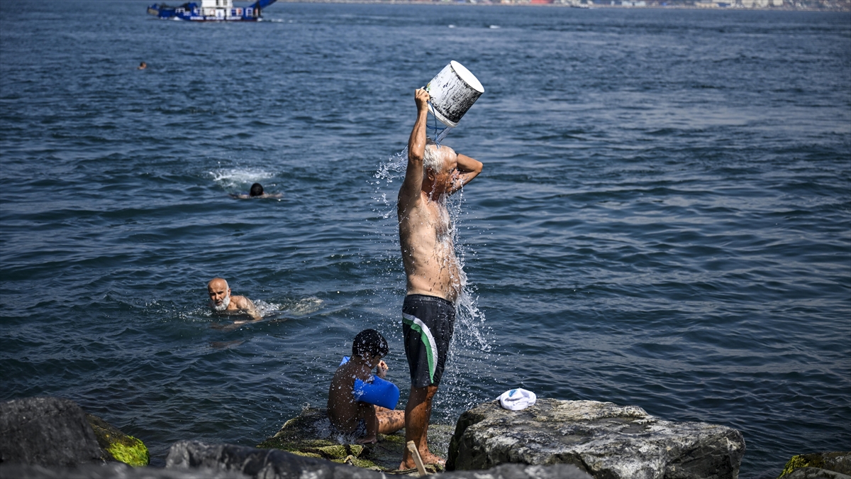 Kentte etkisini gösteren sıcak havada serinlemek isteyenler, sahil atıklarla dolu olmasına rağmen denize girerken, bazı vatandaşların selle sürüklenen odunları topladığı görüldü.