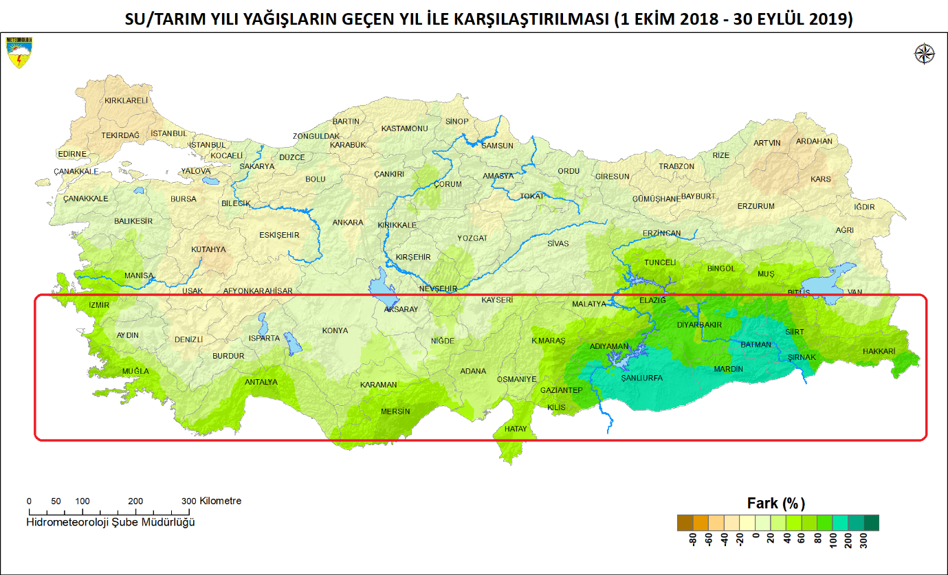 “1 Ekim 2018- 30 Eylül 2019 dönemini kapsayan 2018-2019 su yılı yağışları geçen yıl yağışlarının üzerinde gerçekleşti. Bu yıl geçen seneye nazaran kümülatif yağışlarda ortalama %17 artış görüldü. Meteoroloji Genel Müdürlüğünün verilerine göre bu yağışlardaki artış daha çok Türkiye’nin Akdeniz Kıyıları ve Güneydoğu Anadolu bölgesinde gerçekleşti.