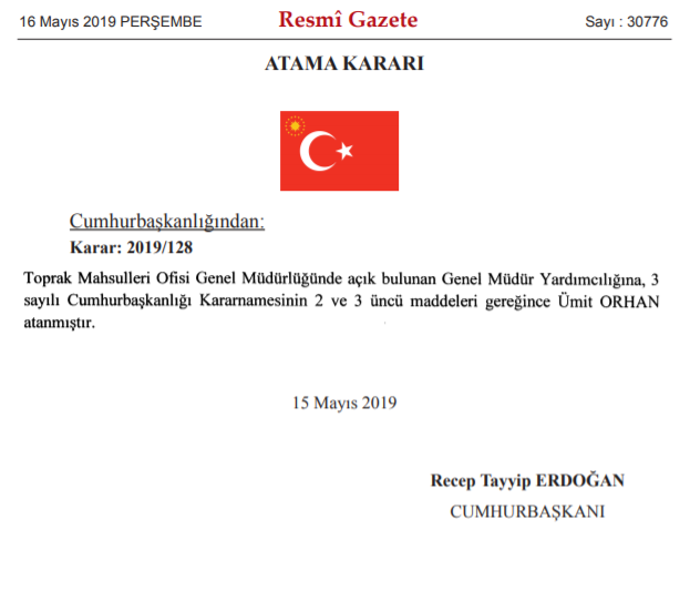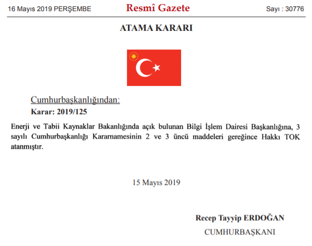 Bankacılık Düzenleme ve Denetleme Kurulu (BDDK), Toprak Mahsulleri Ofisi (TMO) ile Enerji ve Tabii Kaynaklar Bakanlığı'na dair atama kararları bugün Resmi Gazete'de yayımlandı.
