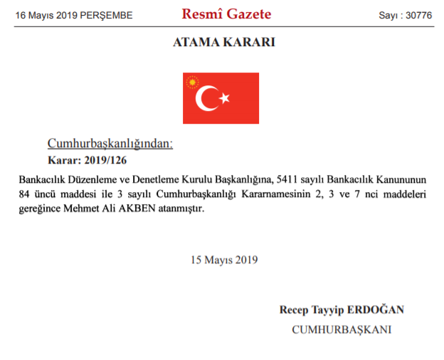Cumhurbaşkanı Erdoğan imzalı karara göre, BDDK Başkanlığına yeniden Mehmet Ali Akben, TMO Genel Müdür Yardımcılığına Ümit Orhan, Enerji ve Tabii Kaynaklar Bakanlığında açık bulunduğu ifade edilen Bilgi İşlem Dairesi Başkanlığına Hakkı Tok atandı.