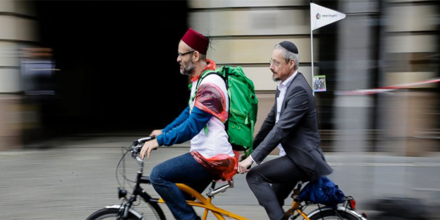 25 civarında Alman Yahudi ve Müslüman, ikili gruplara ayrılarak, Berlin’de gerçekleştirdikleri bisiklet yolculukları ile ülkede artan saldırıları protesto etti. Grupta, haham ve imamların yanı sıra, başörtülü Müslüman kadınlar ve takkeli Yahudiler de yer aldı.