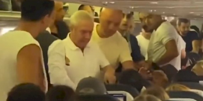 Bu sırada uçakta bulunan Fenerbahçe’nin eski başkanı Aziz Yıldırım ortalığı sakinleştirmek için araya girdi. Arka koltuklarda bulunan diğer yolcuların telefon kamerasıyla kaydettiği o anlarda ayakta görülen Yıldırım, koltuğunda bağırmaya devam eden birinin yanına gelerek sakinleştirmeye çalıştı.