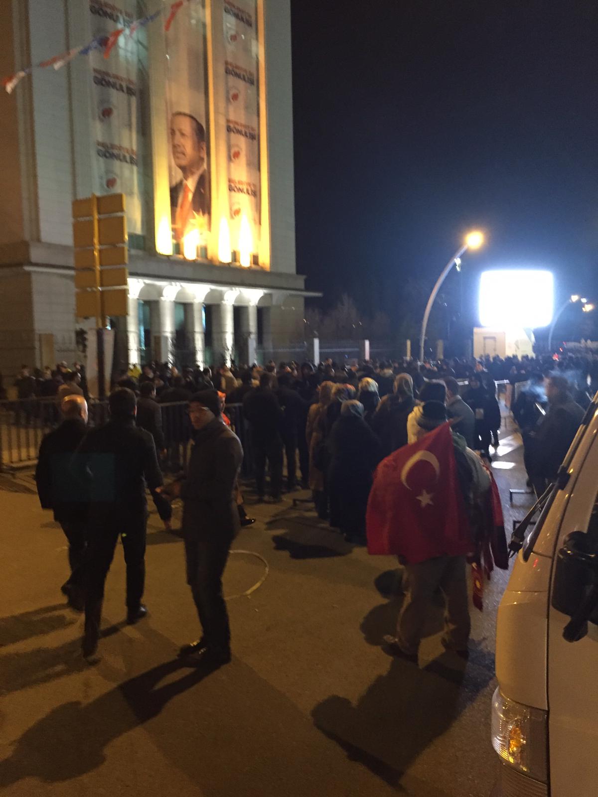 31 Mart Yerel Seçim'inde Türkiye genelinde en yüksek oyu alan Ak Parti'nin Ankaradaki merkez binasının önünde gruplar kutlamalar için toplanmaya başladı.