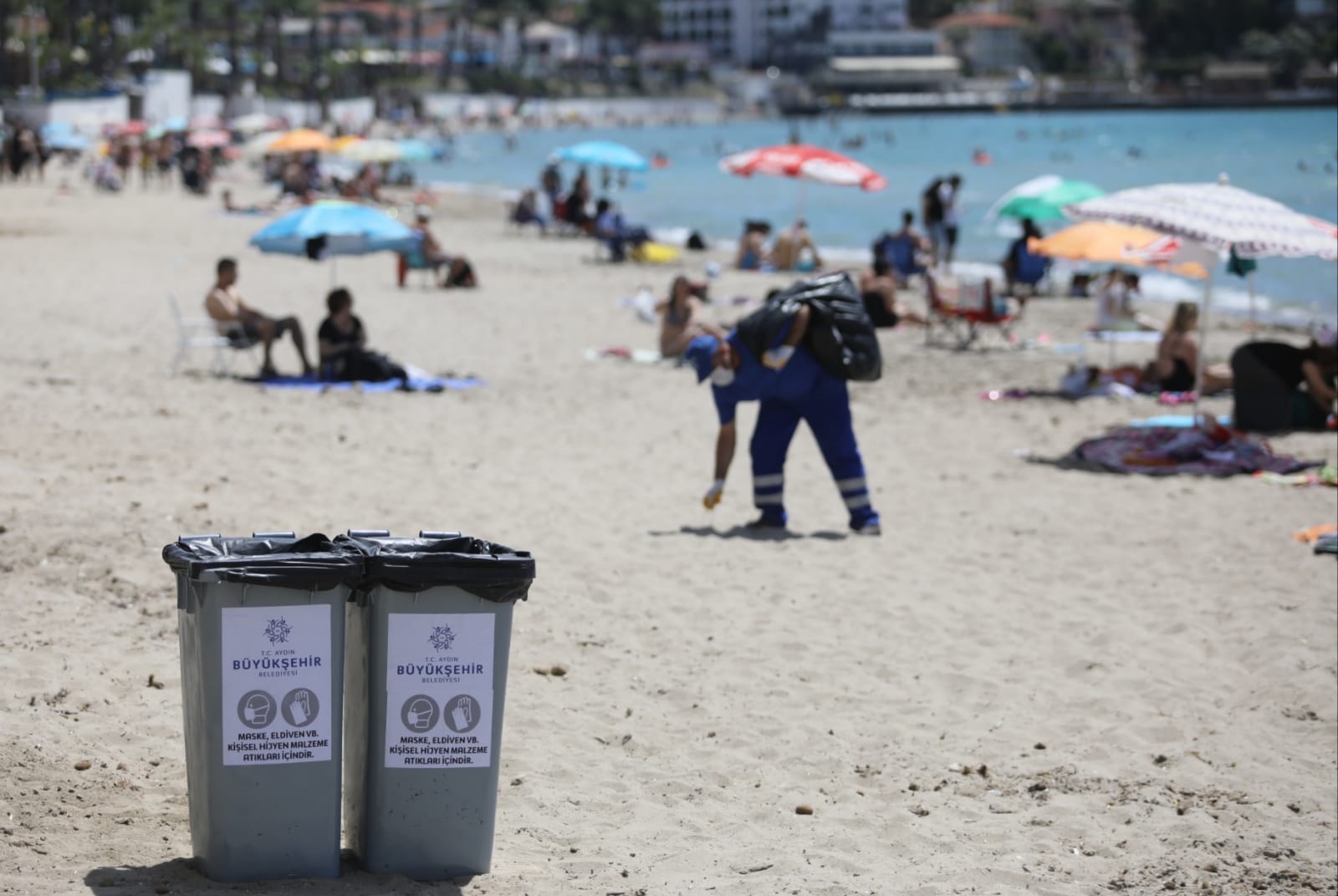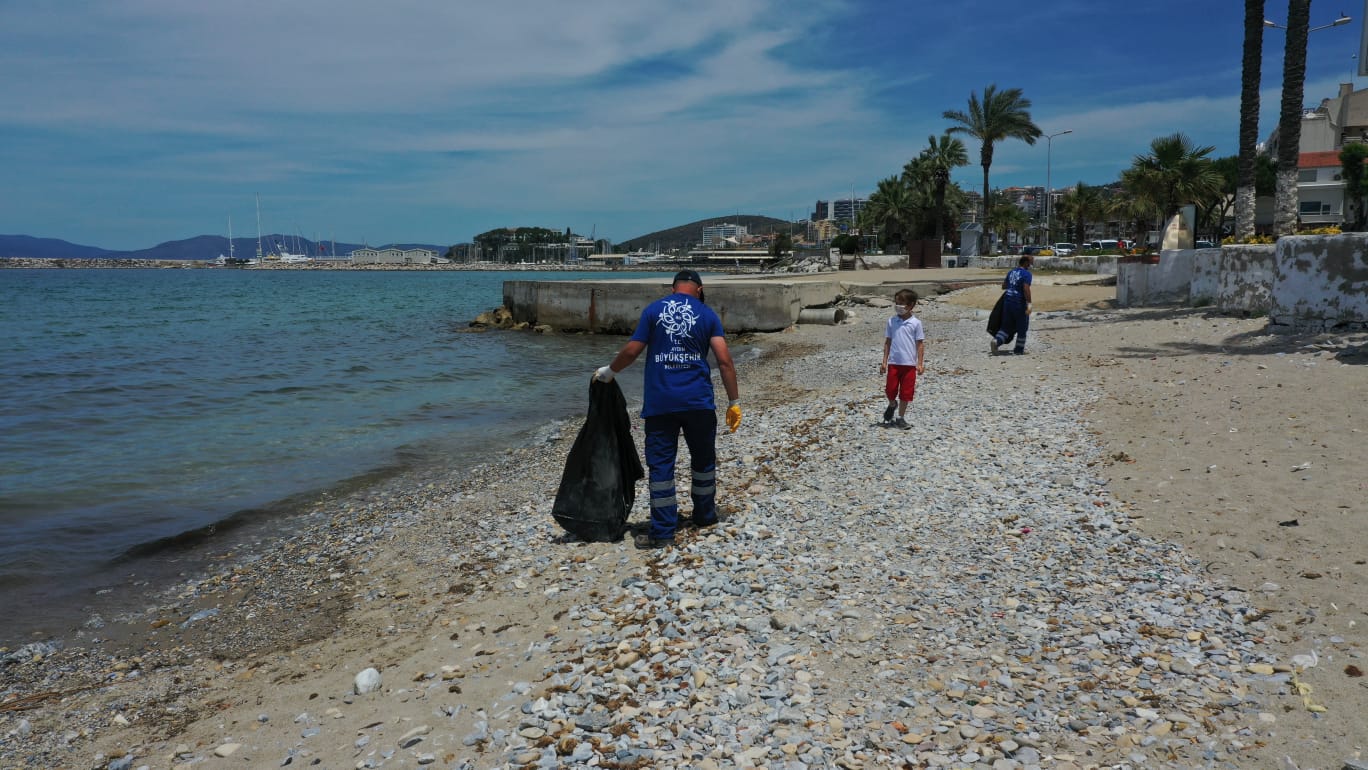 Dünya çapında çevre duyarlılığı oluşturmak için ilan edilen 5 Haziran Dünya Çevre Günü, Aydın’da da çeşitli etkinliklerle kutlandı. Aydın Büyükşehir Belediyesi Çevre Koruma ve Kontrol Daire Başkanlığı tarafından yapılan çalışmada Kuşadası Kadınlar Denizi plajına maske, eldiven ve kişisel hijyen malzemelerinin atılacağı çöp kovaları yerleştirildi.