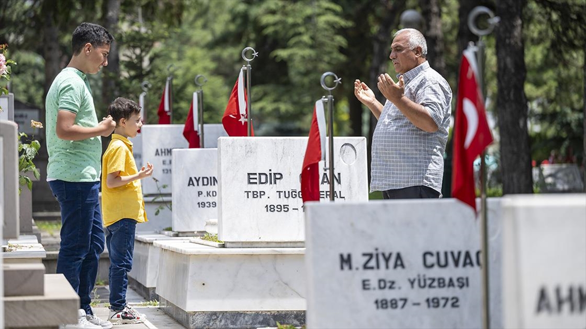 Erken saatlerden itibaren şehitliğe gelen ziyaretçiler, Türk bayraklarıyla donatılmış kabirlerdeki çiçekleri suladı, Kur'an-ı Kerim okudu, dua etti, gözyaşı döktü.