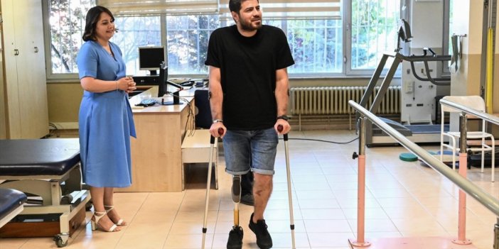 Kahramanmaraş merkezli depremlerde enkaz altında kalan ve sağ bacağı ampute edilen 35 yaşındaki Mustafa Cezayiroğlu, Hacettepe Üniversitesi Fizik Tedavi ve Rehabilitasyon Fakültesi'nde yapılan protez sayesinde 5 ay sonra tekrar ayağa kalktı