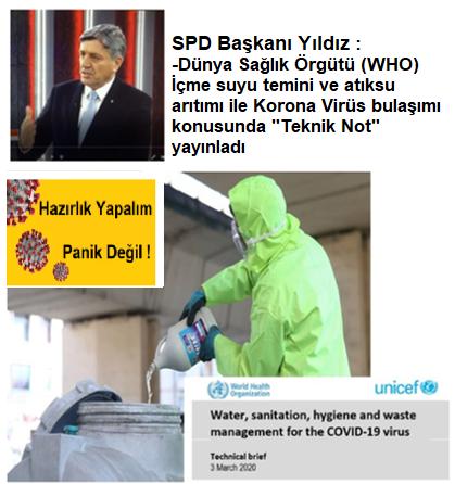 Bu notta COVİD-19 (Korona Virüs) 'ün içmesuyu ve kanalizasyon sistemlerİ içerisinde canlılığını devam ettirip ettiremiyeceği konusunda oldukça detaylı açıklamalar yer alıyor.Bu açıklamalarda özetle; şimdiye kadar Korona Virüsün içmesuyu ve evsel atıksu sistemleri içerisinde canlılığını devam ettirebildiğine dair bir bulguya rastanmadığı ileri sürülüyor.