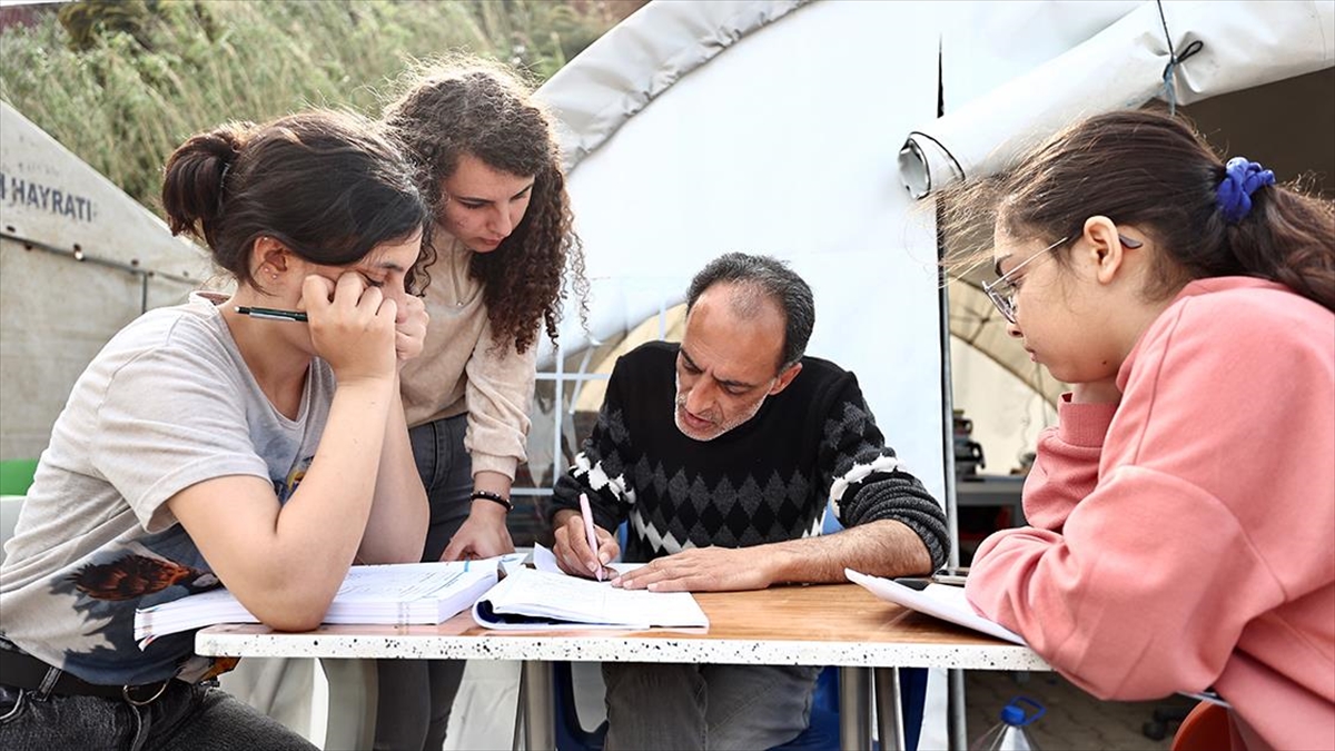 Kahramanmaraş merkezli depremlerden etkilenen Hatay'ın Samandağ ilçesinde yaşayan farklı branşlardaki 31 gönüllü öğretmen, oluşturdukları çadır sınıflarda Yükseköğretim Kurumları Sınavı'na (YKS) hazırlanan öğrencilere ders veriyor