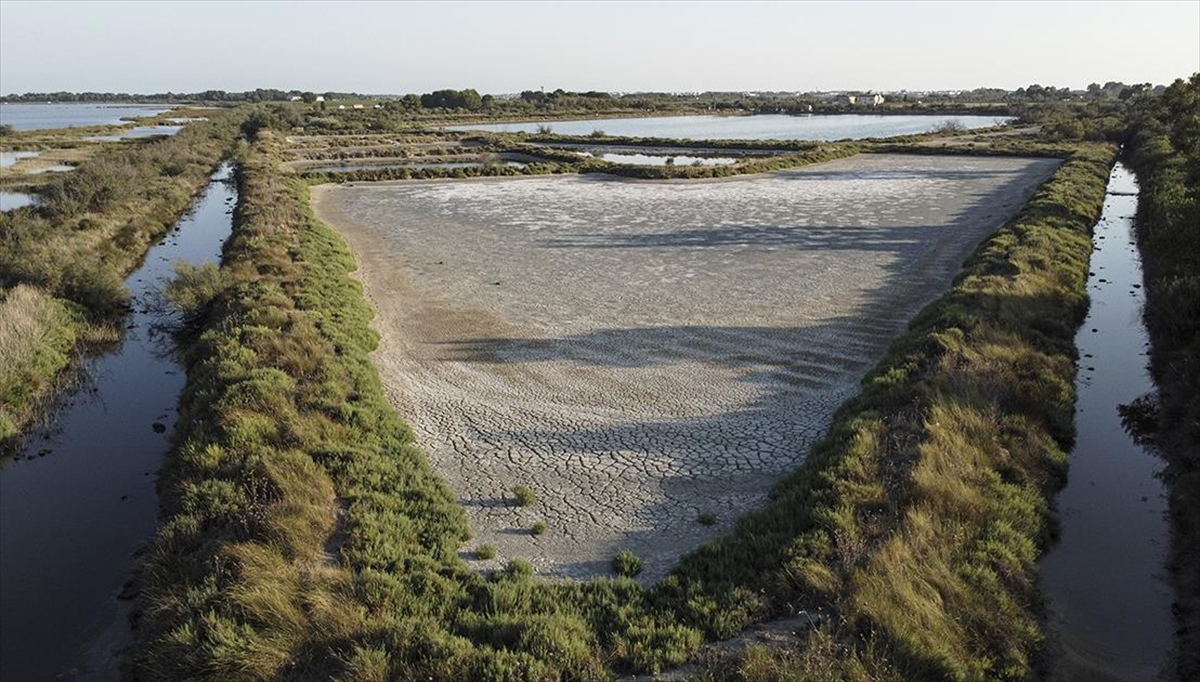 Ülkenin Aigues Mortes bölgesindeki gölde su çekildi.