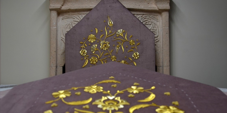 KÜTAHYA(AA) - Kütahya Olgunlaşma Enstitüsünde, Osmanlı hanedanına ait türbelerin sanduka örtülerinin yenilenmesi amacıyla başlatılan proje kapsamında, puşideler aslına uygun şekilde aylar süren çalışmayla ilmek ilmek işlenip hazırlanıyor.