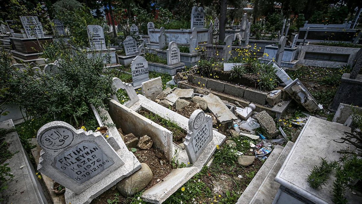 Çekmece Mahallesi'ndeki yaklaşık 2 bin kabrin bulunduğu mezarlık, 6 Şubat'taki Pazarcık ve Elbistan merkezli depremler ile 20 Şubat'taki Defne merkezli 6,4'lük sarsıntıya dayanamadı.