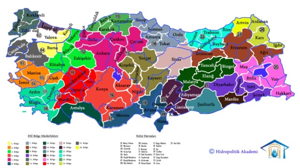 DSİ Bölge Müdürlüklerinin mevcut yetki ve sorumluluk alanları kapsamındaki iller, konu nehir havza ölçeğinde ele alındığında değişmektedir.