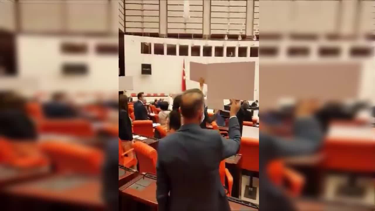 HDP milletvekilleri Meclis Genel Kurulu’nda ABD Minneapolis’de polis tarafından boğularak öldürülen George Floyd’un “Nefes alamıyorum” ifadeleriyle eylem yaptı.