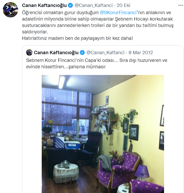 Sosyal medya hesabından paylaşımda bulunan Kaftancıoğlu, “Öğrencisi olmaktan gurur duyduğum Şebnem Hocayı susturamayacaksınız” demişti.