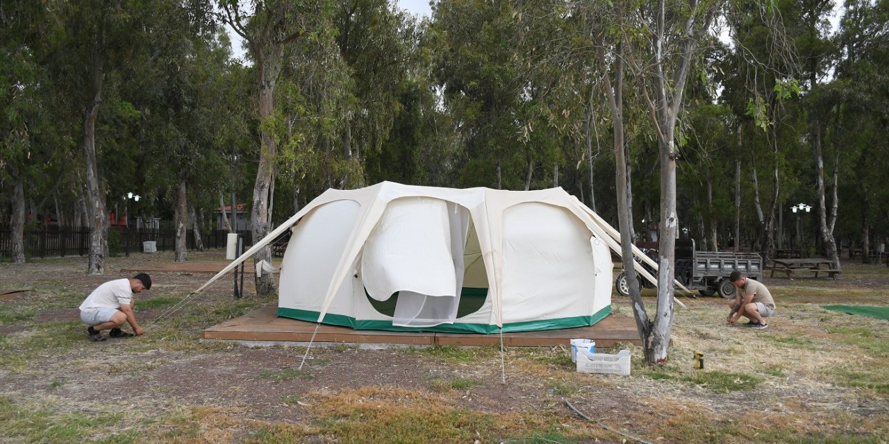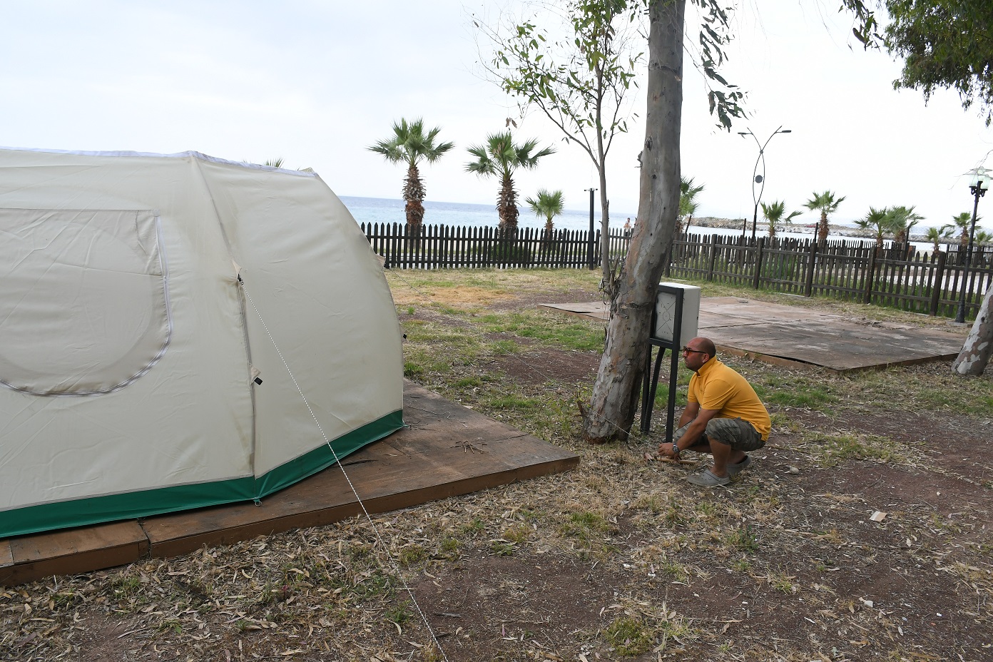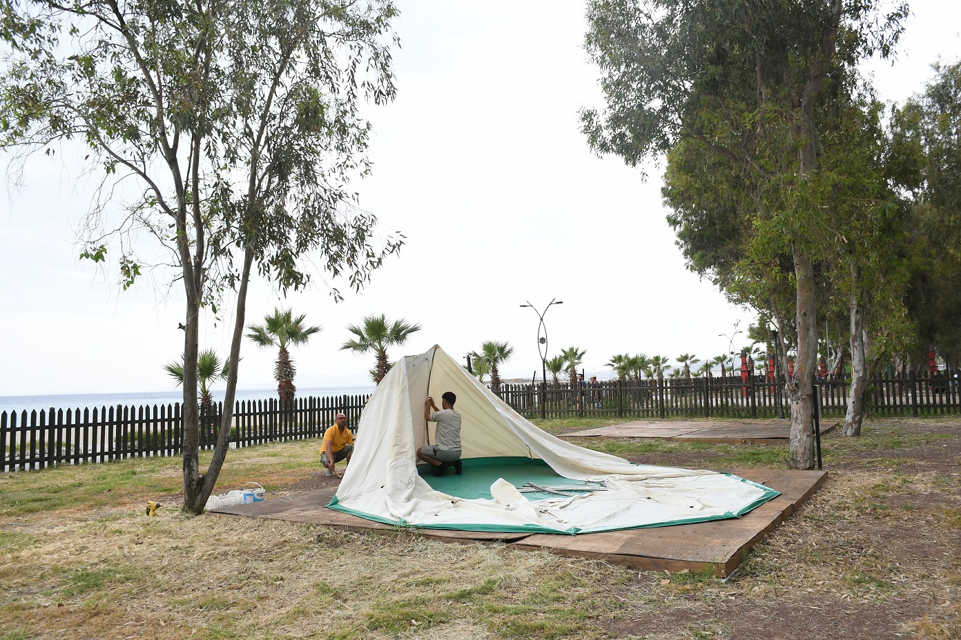 Kuşadası Belediyesi ekipleri, hizmet vermeye başladığı 2021 yılından bu yana kamp ve karavan tutkunlarının gözdesi haline gelen ve yıldan yıla kapasitesi artan Ada Camping’i, ağırlamaya hazırlandığı konukları için konforlu hale getiriyor. Hazırlıklar kapsamında zemin düzenlemesi ve ilaçlama çalışması yürüten ekipler, 20 adet glamping çadır ile 100 adet standart çadırın kurulumunu sürdürüyor. Tatilcilerin kendi çadırlarında konaklamalarına da imkân tanıyan Ada Camping’de bulunan 46 karavan kapasiteli alanın düzenlemesi de gerçekleştiriliyor.