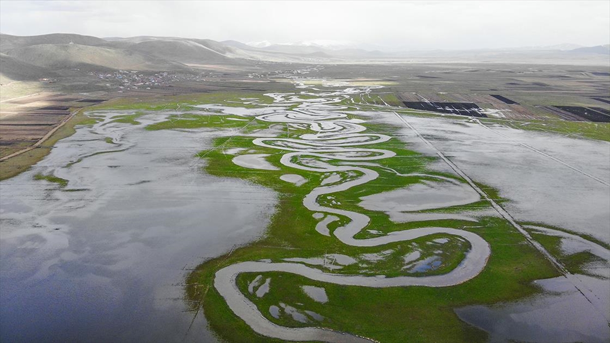Göçmen kuşların gelmeye başladığı göl ve çevresindeki karlı dağlar, Anadolu Ajansı (AA) ekibince dron ile görüntülendi.