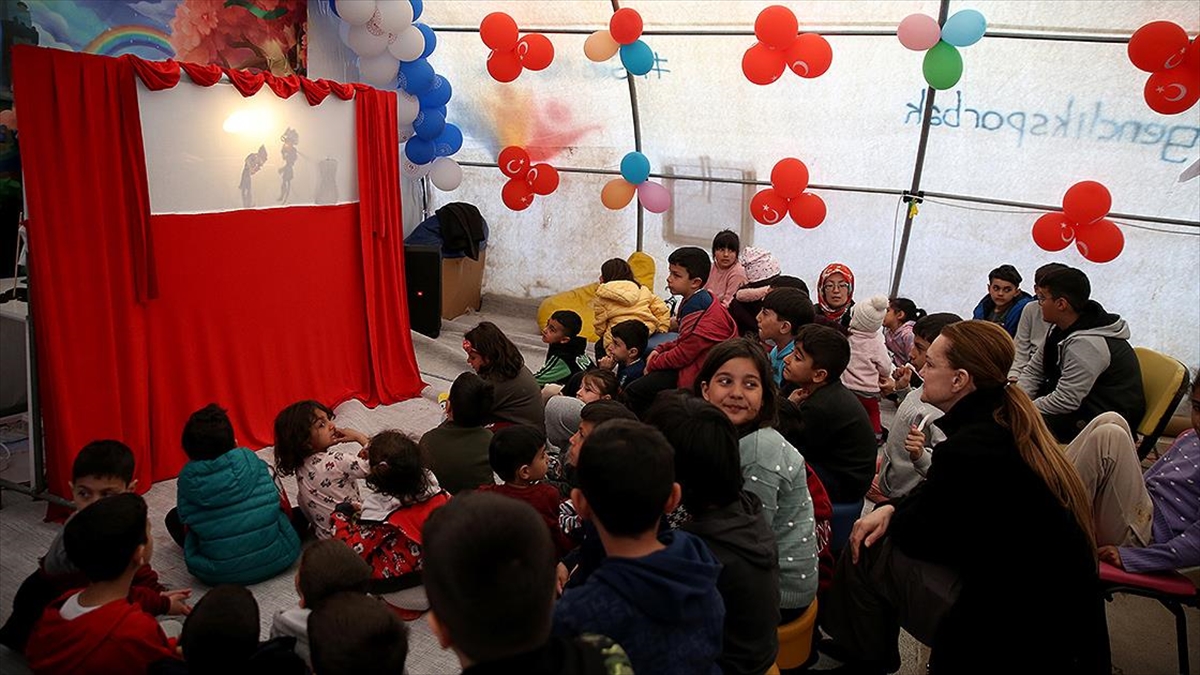 Kahramanmaraş merkezli depremlerin büyük yıkıma neden olduğu Malatya'da konteyner kentte kalan çocuklar, afetin olumsuz etkilerinden "Karagöz ve Hacivat" gösterisiyle uzaklaşıyor.