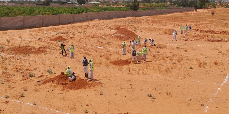 Toplu mezar kazı çalışmalarının yürütüldüğü kırsal alanlarda, Kayıpları Arama ve Tespit Kurumu, Trablus Başsavcılığına bağlı adli tıp uzmanları ve bu ekiplere destek veren sağlık çalışanlarının yanı sıra emniyet makamlarına bağlı cinayet masasından polisler bulunuyor.