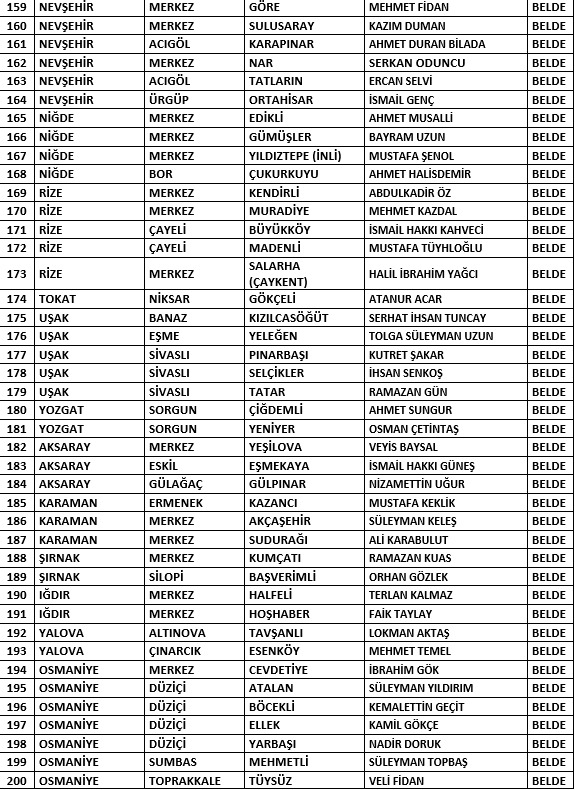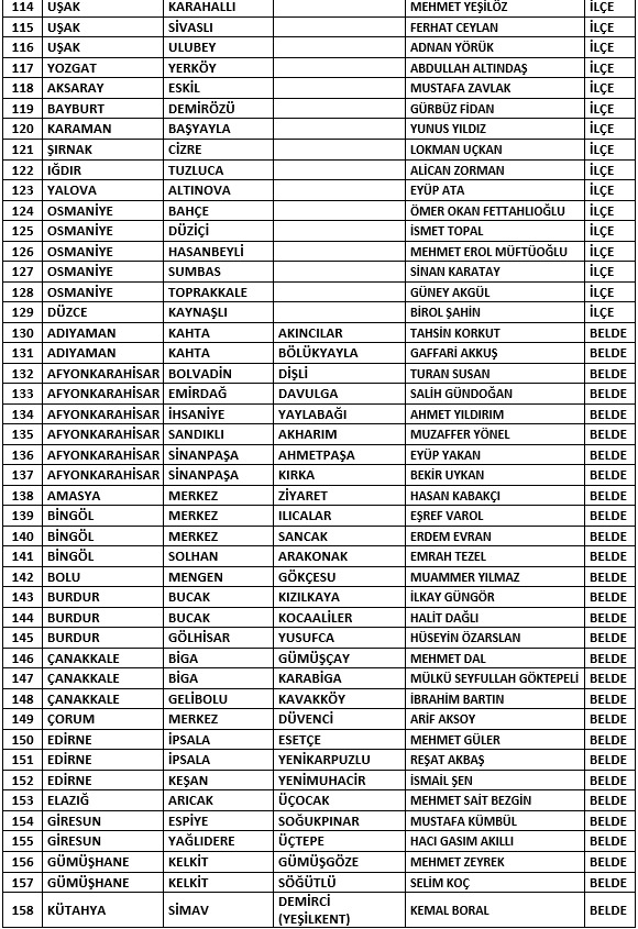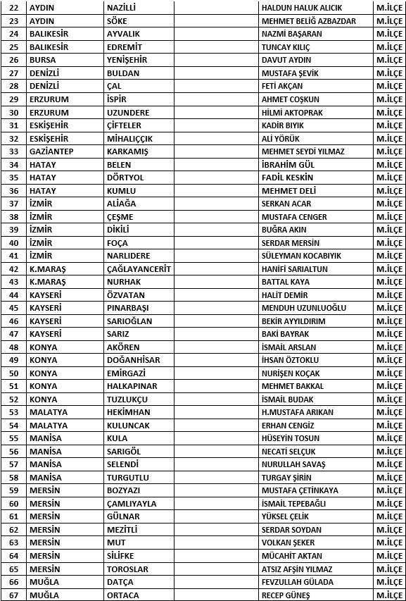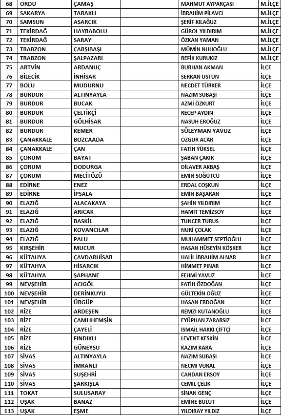 4 il olmak üzere toplamda 200 adayın ismi belirlendi. Buna göre Burdur Belediye Başkan adayı Uğur Şen, Çanakkale Belediye Başkan adayı Hakan Pınar, Çorum Belediye Başkan adayı Kenan Şahin ve Kırklareli Belediye Başkan adayı Derya Bulut olarak belirlendi. Ayrıca 72 beldenin de adayları belirlendi.
