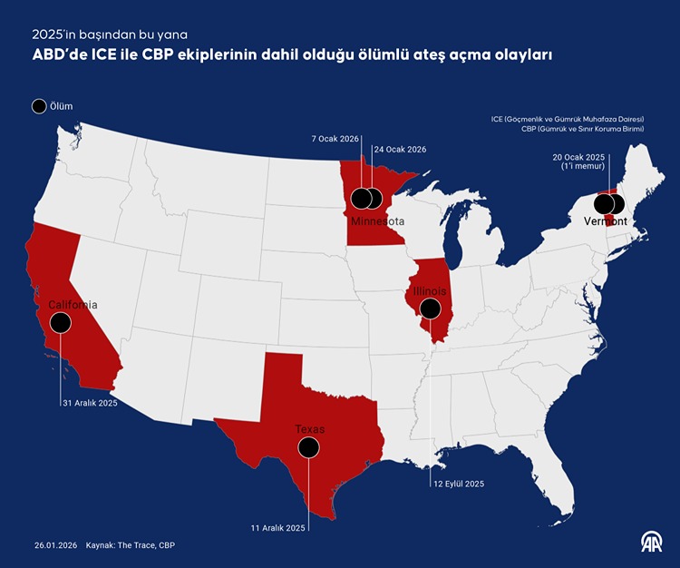 Minneapolis'te ICE görevlileri, 7 Ocak'ta da göçmenlere yönelik operasyonları sırasında 37 yaşındaki Amerikalı Renee Nicole Macklin Good adlı ABD vatandaşı kadını aracında silahla öldürmüştü.