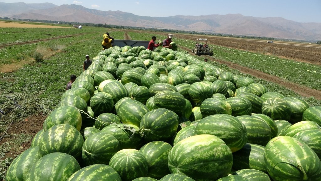 Muş'ta yaklaşık 3 aydır toprakla buluşturulan karpuzlar yetişmeye başladı. Özellikle Mardin ve Batman'dan gelerek ekim yapan çiftçiler, elde ettikleri karpuzları toplamaya başladı. Tır ve kamyonlara yüklenen karpuzlar, Doğu ve Batı illerine sevk ediliyor. Bin 200 ailenin geçimini sağladığı karpuz üretimiyle kent ekonomisine katkı sağlanıyor.