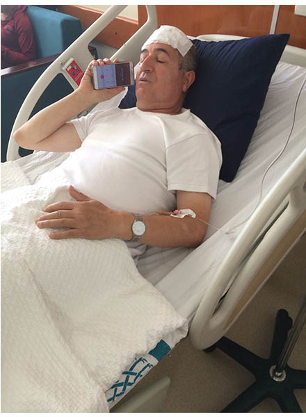 Bugün tekrar tomografisi çekilecek olan Özcan Yeniçeri gelen telefonlara cevap vermeye başladı.