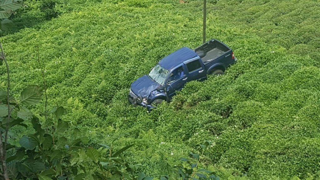 Rize'nin Pazar ilçesinde virajı alamayan kamyonet yoldan çıkarak çay tarlasına uçtu.