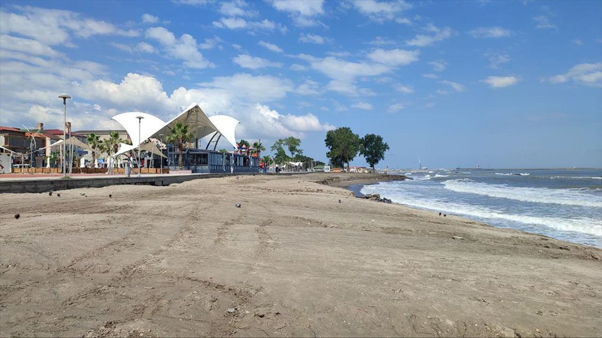 Dün dalgalar ve rüzgar nedeniyle şezlong ve şemsiyelerin zarar gördüğü, bazı cankurtaran kulelerinin de yıkıldığı sahillerde suda kirlilik oluştu.