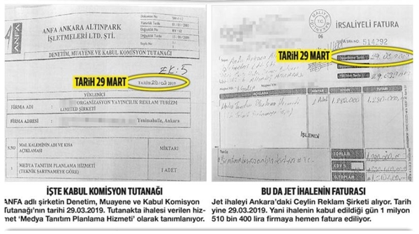 İşlemler, yıldırım hızı değil, ışık hızıyla üç gün içerisinde ihale yapıp, sözleşme imzalanıyor. 30 gün süreli işin kabulü ilk gün yapılıyor, fatura kesilip tebliğ ediliyor.