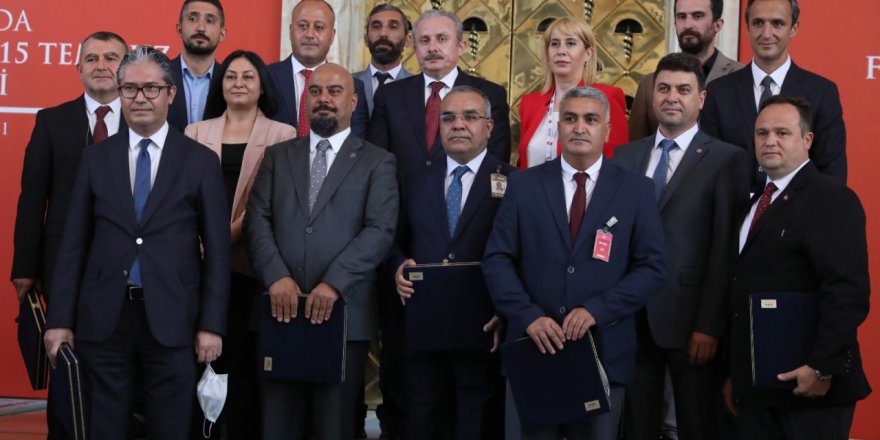 Dün, 15 Temmuz Demokrasi ve Milli Birlik Günü dolayısıyla TBMM'de ‘5. Yılında Fotoğraflarla 15 Temmuz’ sergisi açıldı. TBMM Başkanı Mustafa Şentop, 15 Temmuz gecesi mecliste görev yapan muhabir, kameraman ve foto muhabirlere günün anısına hediye ve plaket takdim etti.