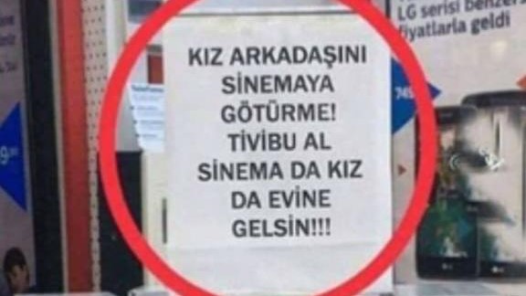 İzmir Karşıyaka çarşısında görüntülenen bu reklam, cinsiyetçi yaklaşımıyla dikkat çekti.