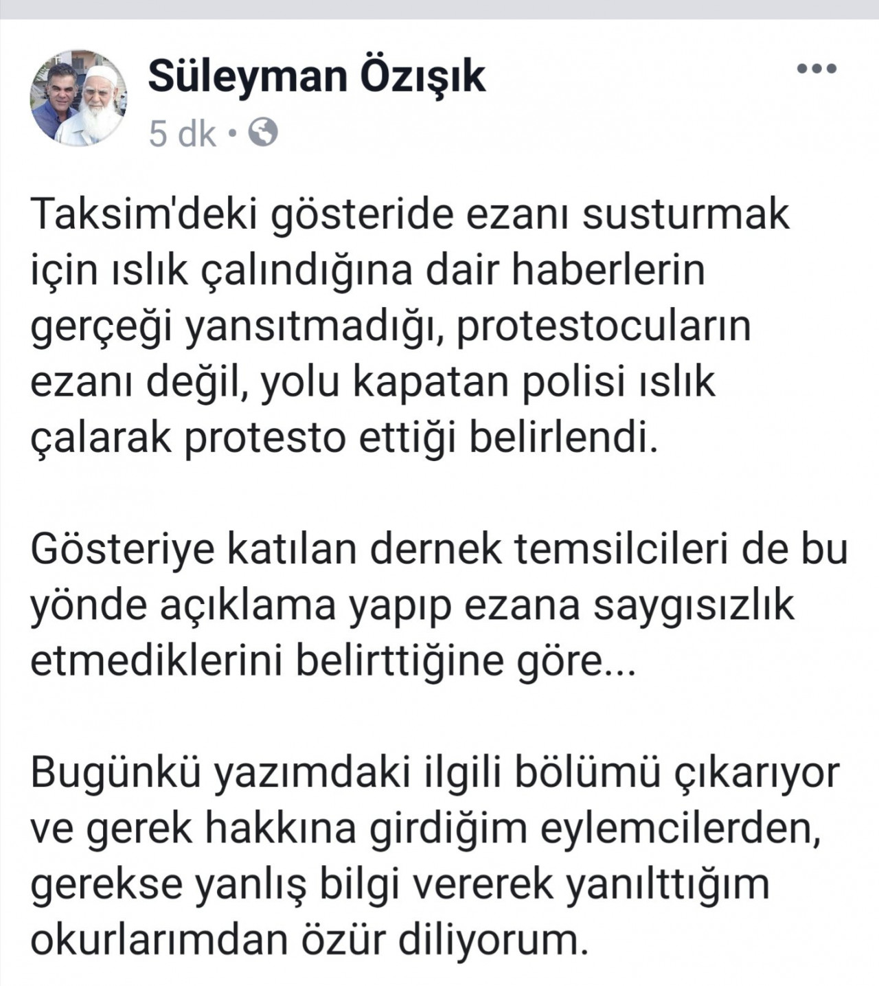 Özışık, gerçek dışı iddiayı köşesine taşıdığı için bir özür yazısı yayınladı. Özışık'ın mesajı şöyle: