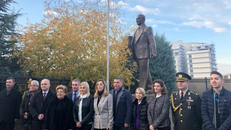 Bu toprakların yetiştirdiği en büyük isimlerden biri olan Mustafa Kemal Atatürk’ün heykeli, artık Üsküp’teki Türkiye Büyükelçiliği’ni süslüyor.