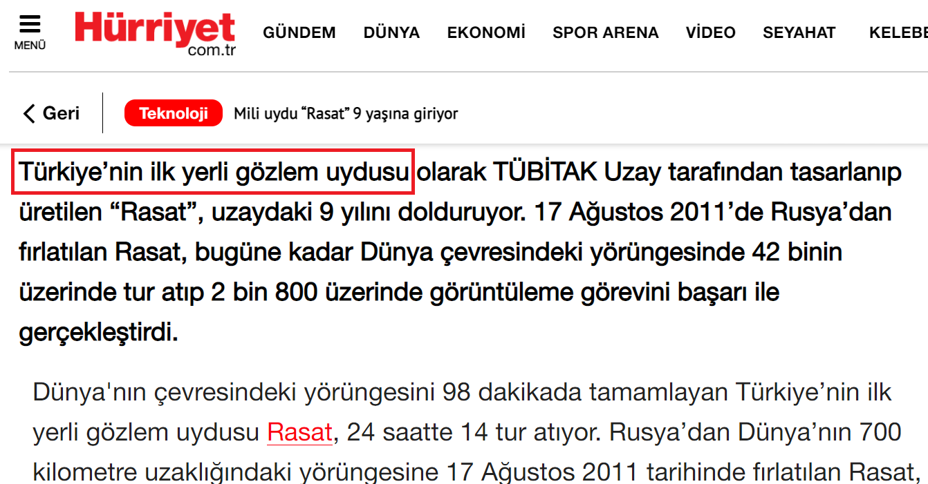 Aşağıdaki haberlere baktığınızda 2012 yılından 2022 yılına kadar en az 5 farklı uydunun her birinin fırlatma töreni açıklamalarında ilk yerli ve milli uydu olarak ilan edildiğini göreceksiniz.