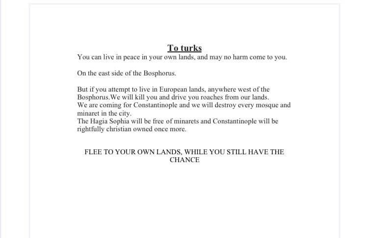 Katliamcı, manifestosunda Türklerle ilgili bir bölüm de yer alıyor.